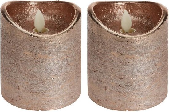 Bol Com 2x Koperen Gouden Led Kaars Flikkerende Vlam 10 Cm Led Stompkaarsen Koper