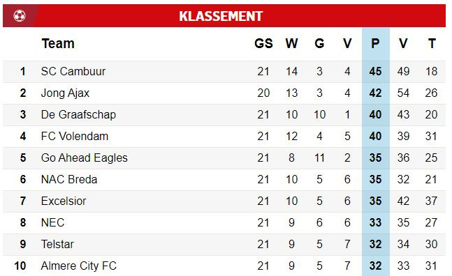 Keuken Kampioen Divisie 2020 2021 Stand Voetbal International